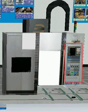 行走到加工中心前面,点击加工中心操作台,弹出加工中心操作界面。如图2-20、2-21、2-22所示。