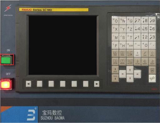 1、 点击总电源按钮,开启数控车床,数控车床显示屏亮起。