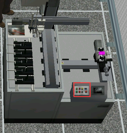 行走至装配站旁,点击下图框选图片,弹出装配站开机操作界面。如图2-25、2-26所示。