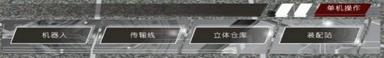 5、单机界面:点击可弹出单机二级菜单,包含有立体仓库、传输线、机器人和装配站。(具体在2.3单机界面)