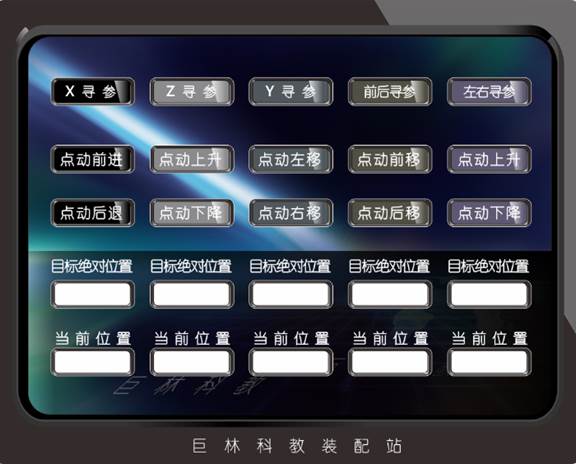 装配站单机操作分5列,X寻参一列为MC3381控制X轴操作,Z寻参一列为MC3381控制Z轴操作,Y寻参一列为MC3381控制Y轴操作。前后寻参一列为放料旋转台X轴操作。左右寻参为放料旋转台Y轴操作。