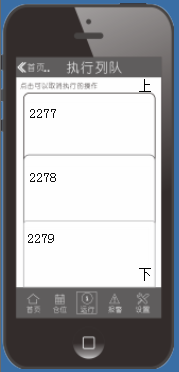 2、手机登录后进入手机首页,(如图2-41)用户可以点击下方的仓位按钮,查看仓库情况,对仓库进行操作(如图2-42所示);点击运行按钮,查看正在运行的情况(如图2-43所示);点击报警按钮,查看报警信息(如2-44所示);点击设置按钮对手机进行设置如图2-45所示。